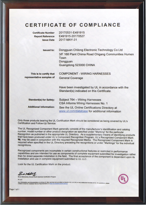 品牌實力保證公司通過并擁有電線之UL安規(guī)認證,電線加工之UL認證,質量管理體系之ISO9001認證。
